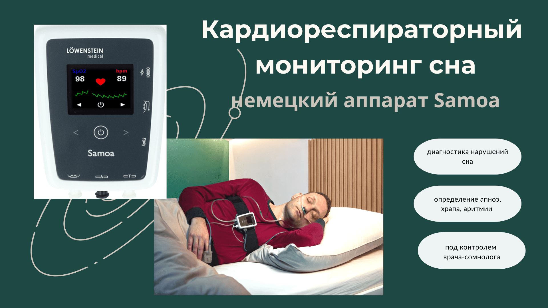 Исследование выполняет врач-сомнолог Коротчик Е.М. Оно помогает выявить апноэ, храп, ночные остановки дыхания, аритмии и другие нарушения, которые часто остаются незамеченными, но могут серьёзно влиять на здоровье сердца и сосудов.