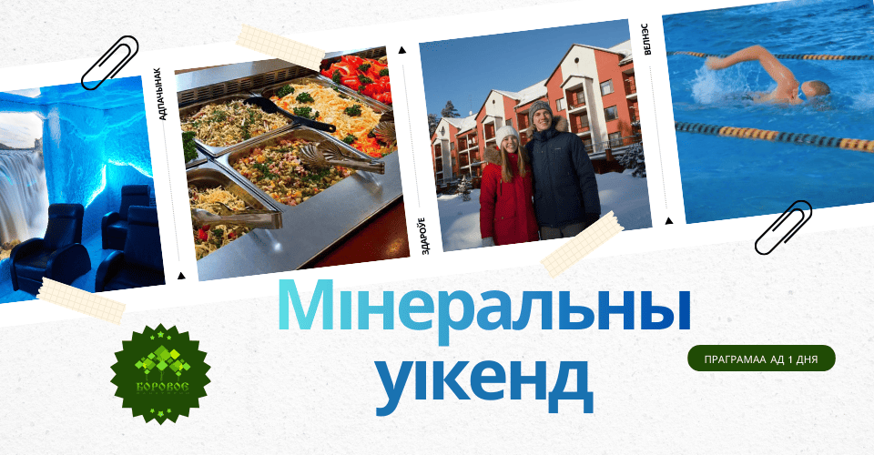 Прадстаўляем вашай увазе лячэбную праграму «Мінеральны ўікэнд» — ідэальнае спалучэнне харчавання, пражывання і лячэбных працэдур для здароўя і дабрабыту.