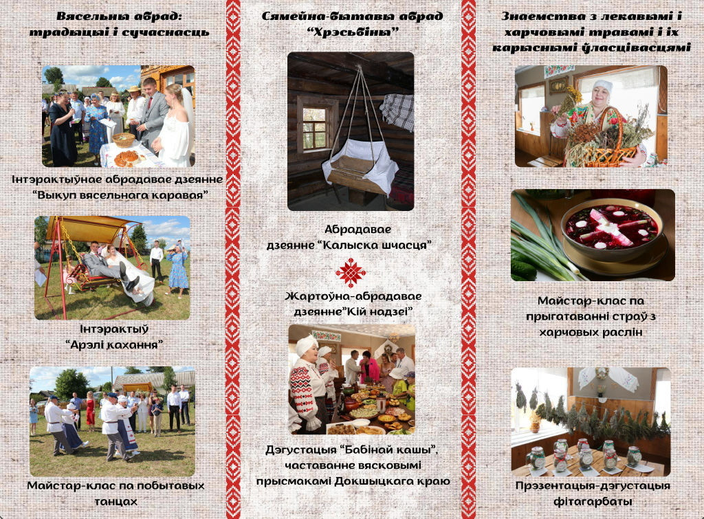 А еще здесь можно научиться готовить на колоде — под руководством хозяек вы освоите искусство жарки яичницы, шкварок и тех самых драников. И, конечно, поучаствовать в фольклорных программах: святочные вечера, Масленица, закликание весны, летние каникулы для школьных лагерей.