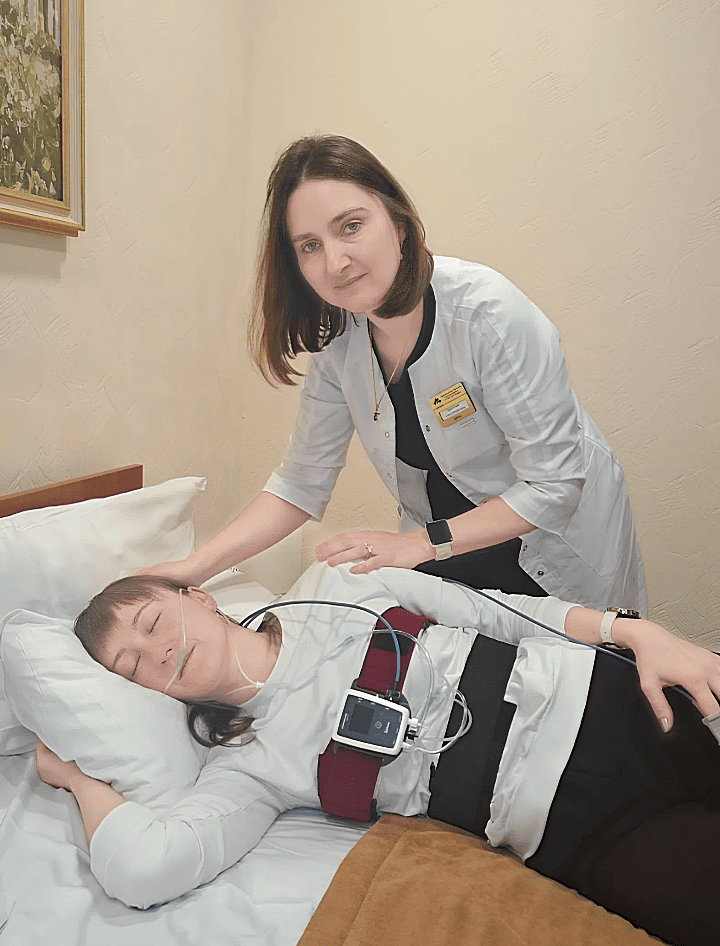 Мониторинг проходит в комфортных условиях санатория. Перед сном устанавливаются легкие датчики, фиксирующие дыхание, уровень кислорода и пульс. Пациент спит в своем номере, а утром врач анализирует данные и дает рекомендации по лечению нарушений сна.